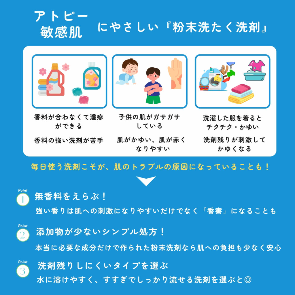 アトピー肌・敏感肌にやさしい粉末洗剤、こんな方におすすめ!