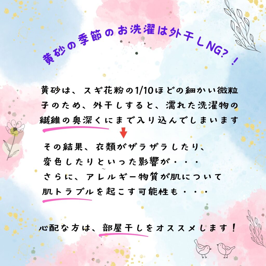 黄砂の飛来が多くなる春は、外干しを避けて部屋干しが正解!