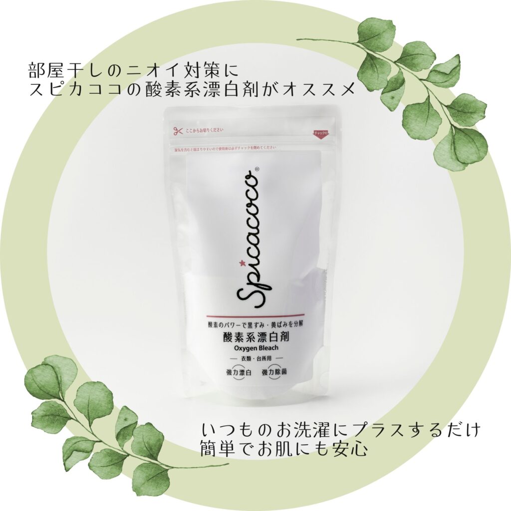 部屋干しの際にはスピカココ酸素系漂白剤がオススメ