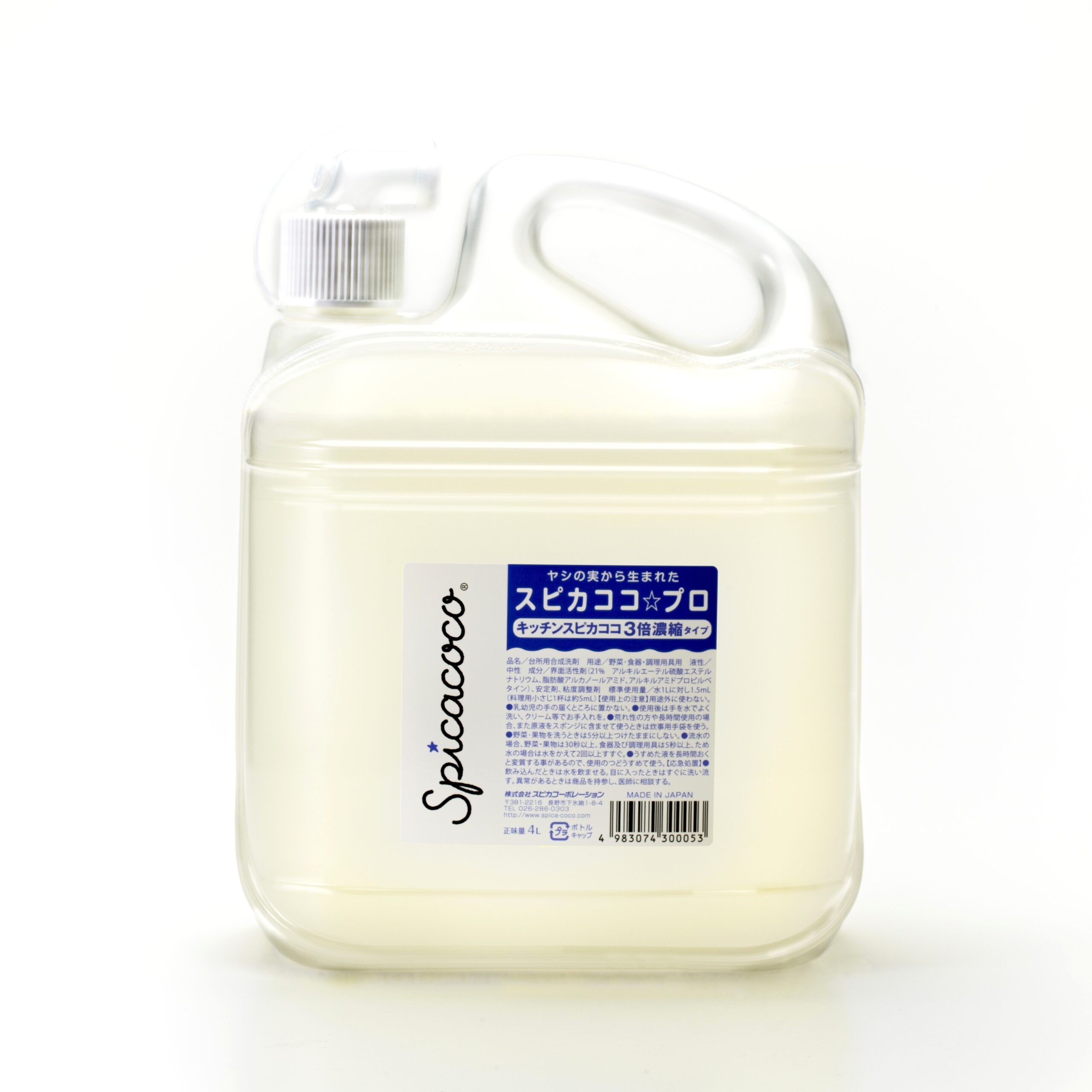 ヤシ油由来で、香料・着色料無添加の台所用洗剤『キッチンスピカココ』の3倍濃縮タイプです。好きな濃さに薄めることが可能!普段の洗い物なら3倍に、こってりと油が強い中華なら原液のまま等、用途に合わせて調整できます。